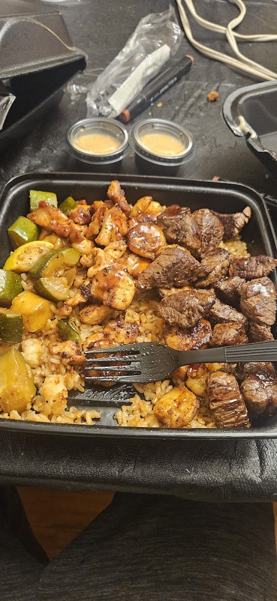 I’m not from Louisville, but I was just stopping by to see some friends. On my way back, I got hungry and saw this place it looked amazing, so we decided to try the steak burrito with loaded fries and the lamb chop hibachi. Let me just say, the wait was a little long, but it was well worth it. I’m not sure, but you might be able to call in an order. I’ve had a lot of lamb in my life and had never heard of lamb hibachi before—it was fantastic! The lamb was perfectly cooked, the rice was great (though a little basic; I think fried rice would’ve been better), and there were just a small amount of vegetables. Still, it was fire. As for the steak burrito, the steak was perfectly cooked, saucy, and both sides were toasted. I will definitely be back and am so glad I gave this a try! Also we only spent $45